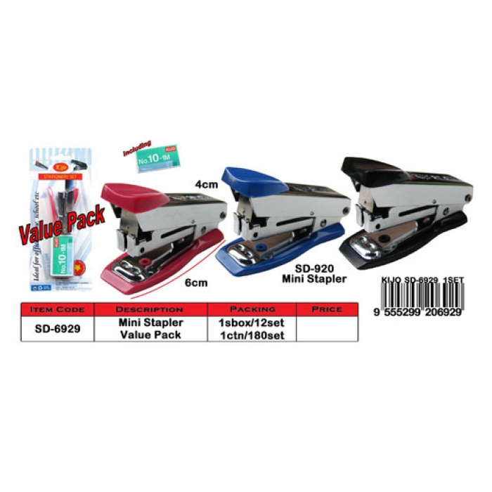 Model: Kijo SD-6929 No:10 Mini Stapler Set Value Pack