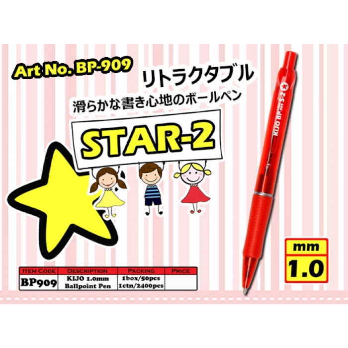 Model: BP-909 KIJO Star-2 1.0mm Ball Pen - Red