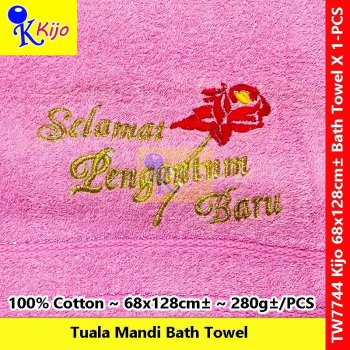 Kijo Selamat Pengantin Baru Jahit Bunga Bath Towel 100%Cotton 68x128cm± 280g± #Kijo #7744 #68A #SelamatPengantinBaru #浴巾