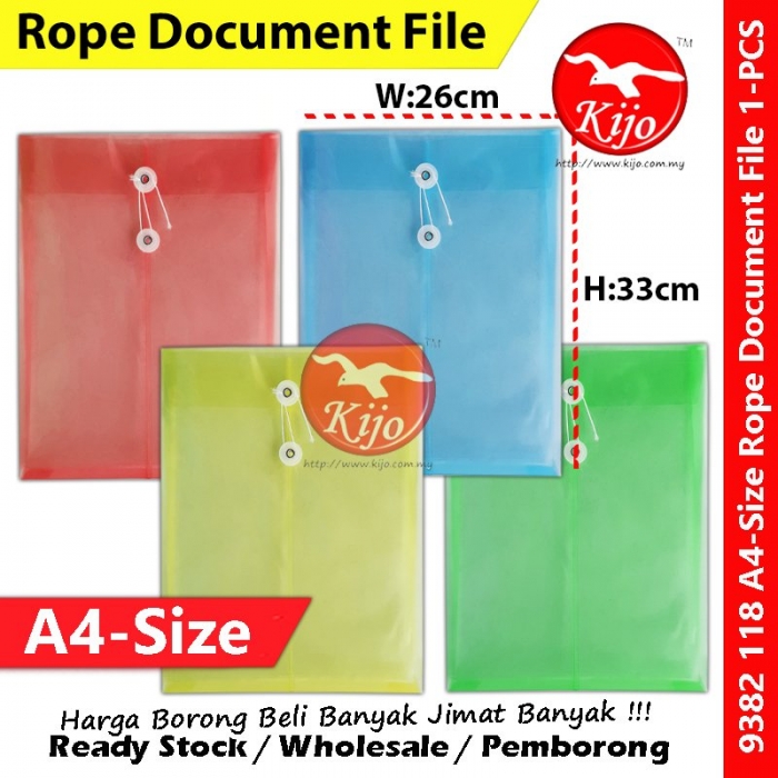 KIJO A4 Size Envelope File / Rope Document File / Fail Tali / Transparent Waterproof Pocket File #A4透明信封文件袋 #绳子文件袋 #9382