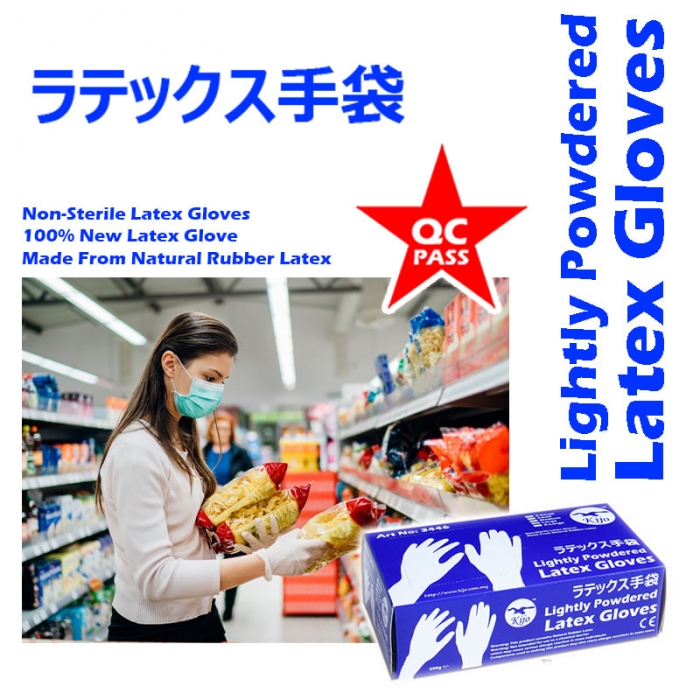 【NEW】Lightly Powdered Latex Glove 500g+/- Per 1 Box #Disposable #Latex #Glove #KIJO #3446 #QC #NEW #Natural #Rubber