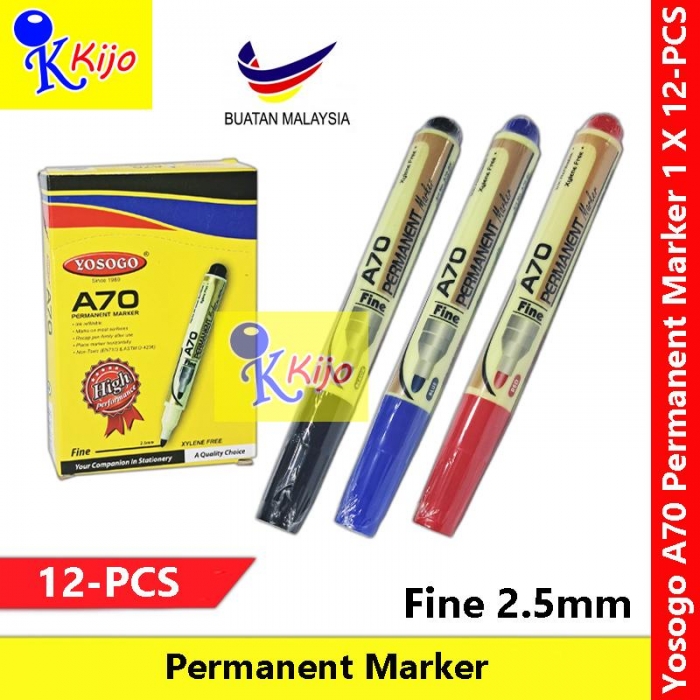 【12-PCS】 Yosogo A70 Permanent Marker Fine 2.5mm #yosogo #A70 #MarkerPen #Marker