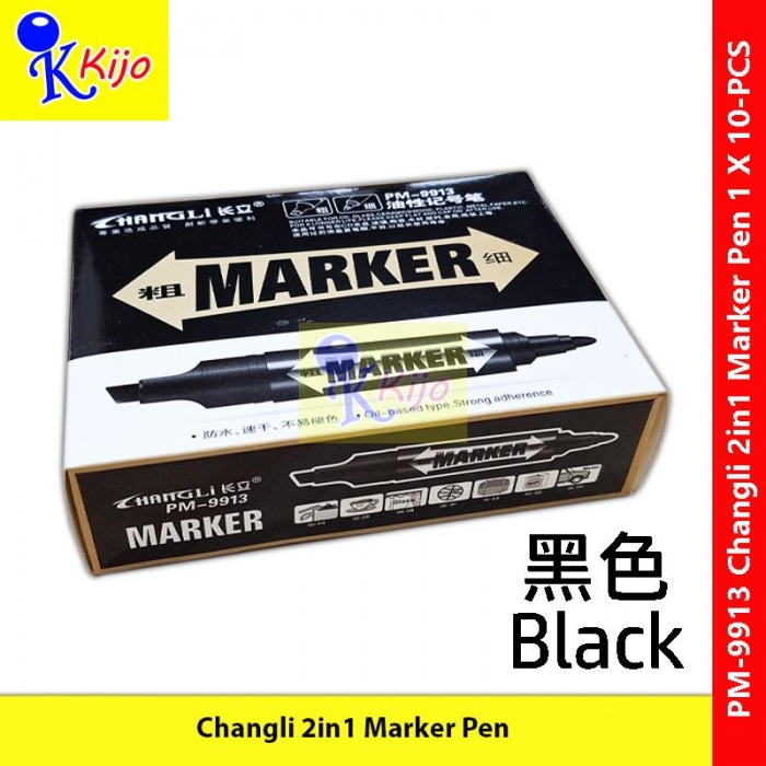 【10-PCS】 Changli 2in1 Permanent Marker Pen #PM-9913 #Changli #Permanent #MarkerPen #Black #P9913