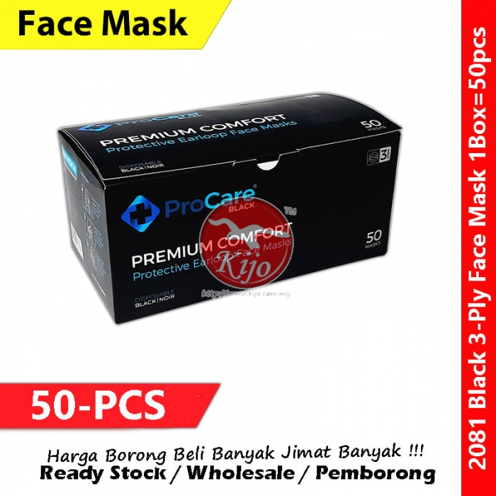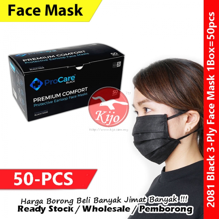 【50-PCS】Black 3-Ply Face Mask Disposable Premium Comfort Face Mask #3ply #EarLoop #FaceMask #Black #2081 #黑色口罩 #ProCare