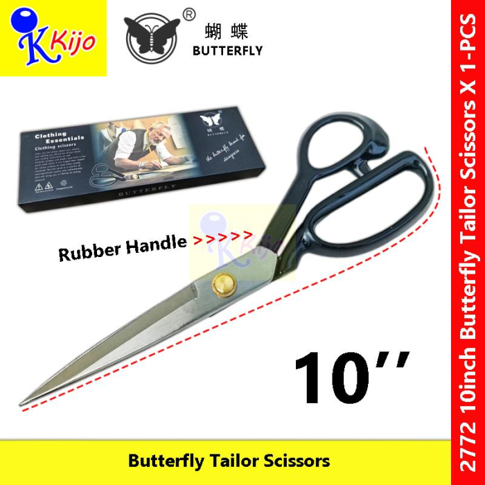Butterfly Tailor Scissors with Rubber Handle - 10 Inch (#2772) adalah gunting jahit berkualitas profesional dengan harga yang tidak terkalahkan. Dengan kualitas yang baik dan harga yang terjangkau, pengguna dapat memperoleh gunting jahit yang tajam dan tahan lama tanpa harus mengeluarkan biaya yang mahal.