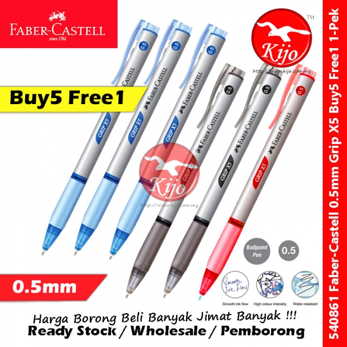 【Buy5 Free1】Faber-Castell GRIP X5 Ball Pen #0.5mm #Retractable #Click #GripX5 #Semi #Gel #Ball #Pen #540861 #5473 #X5