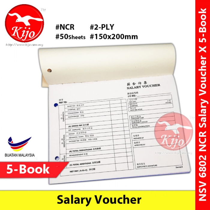 【5-Book】 NCR Salary Voucher 2x50sheets 150x200mm #NSV #6802 #NCR #Salary #Voucher #薪金传票