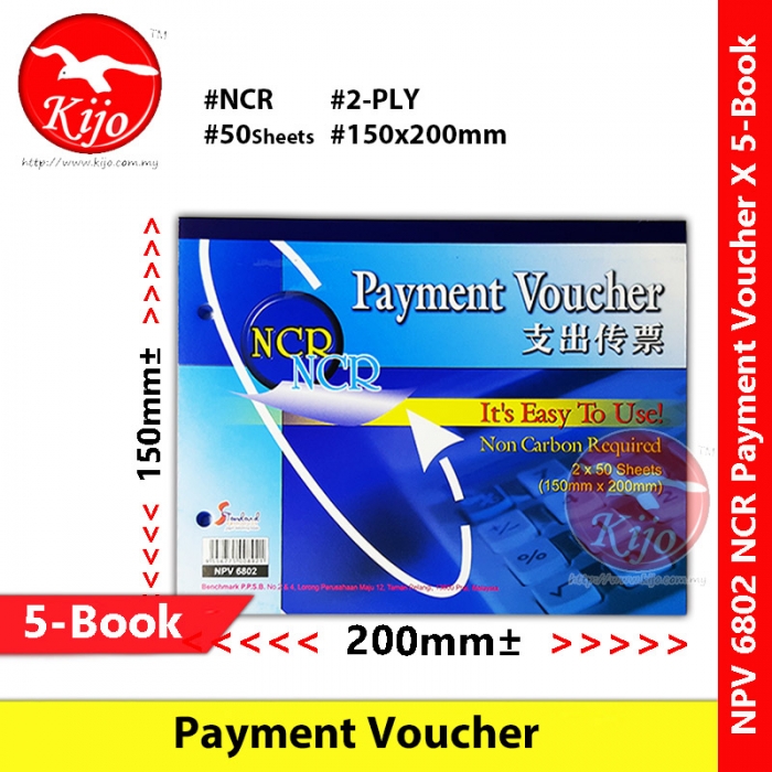 【5-Book】 NCR Payment Voucher 2x50sheets 150x200mm #NPV #6802 #NCR #Payment #Voucher #支出传票