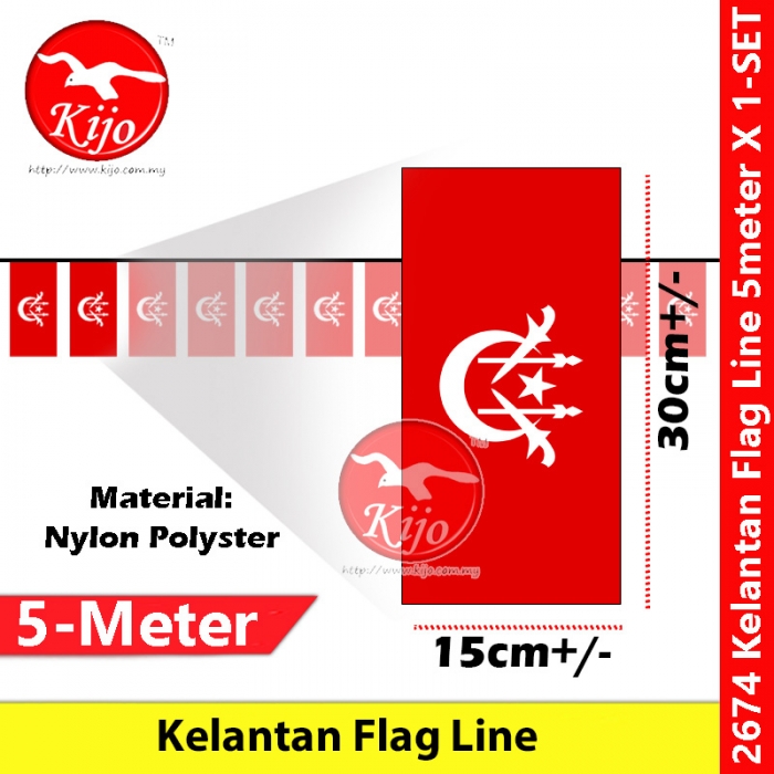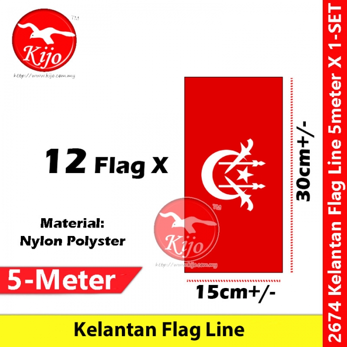 Kelantan Flag Line Nylon Polyester Kelantan Darul Naim Flag 5meter± 12flag #2674 #Kelantan #Flag #line #吉蘭丹旗