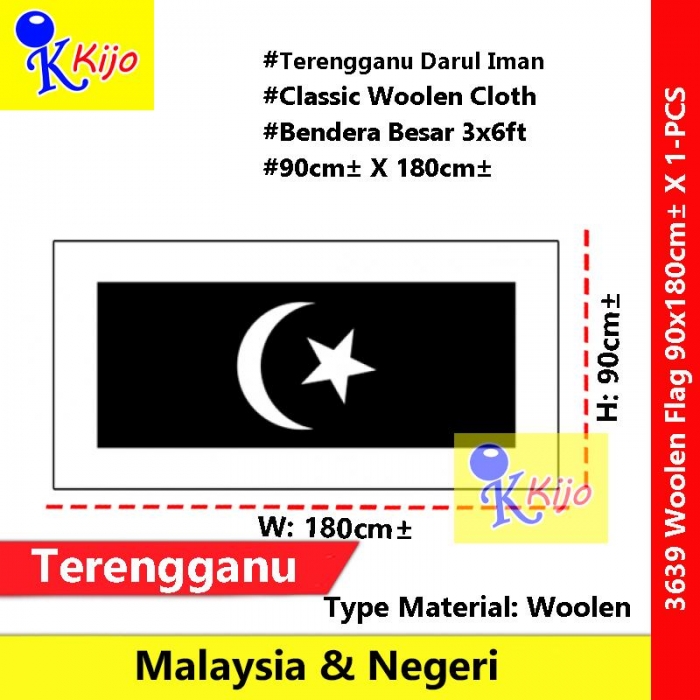 90cm± X 180cm± Terengganu Flag Woolen Flag Negeri Terengganu Darul Iman #3639 #WoolenFlag #Tebal #Terengganu