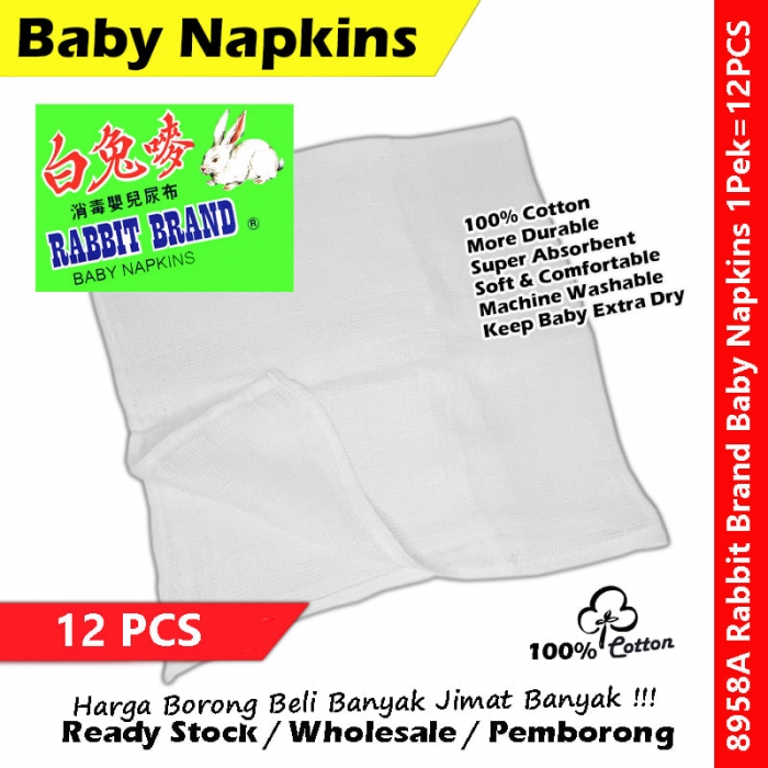 【12 PCS】Rabbit Brand White Cotton Baby Napkins Lampin Bayi #White #Rabbit #Baby #Napkins #Lampin #Bayi #婴儿尿布 #8958A