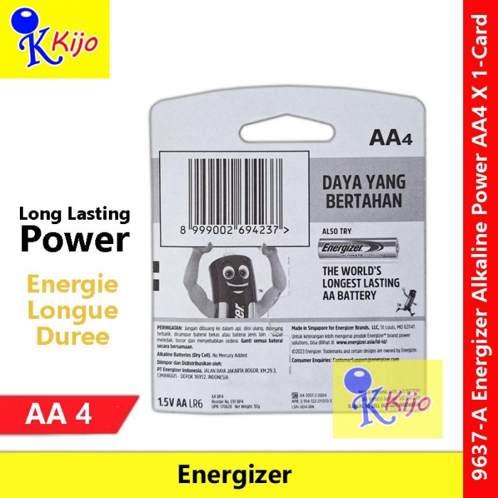Energizer Alkaline Power AA BP4 X 1-Card #E91 #Energizer #EnergieLongueDuree #AlkalinePower #9637-A #AA #Battery