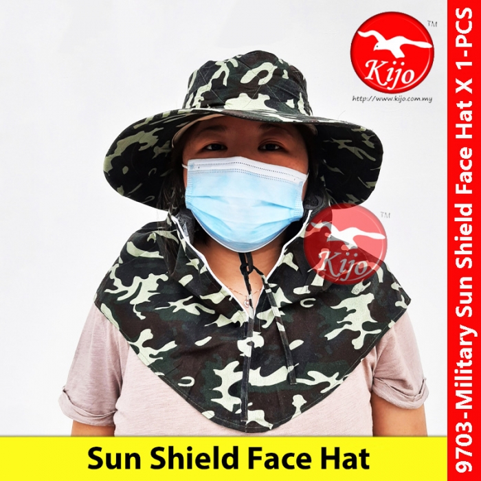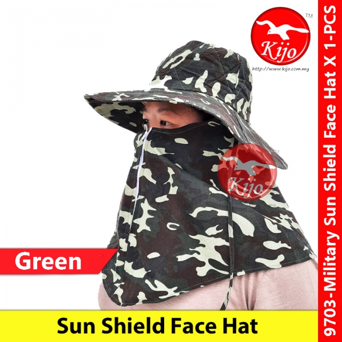 Model: Sun Shield Face Hat / UV Sport Hat / Topi Jepun #9703-Military