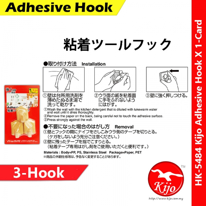 【3-Hook】KIJO Strong Adhesive Hook Self-Adhesive Hook #5484