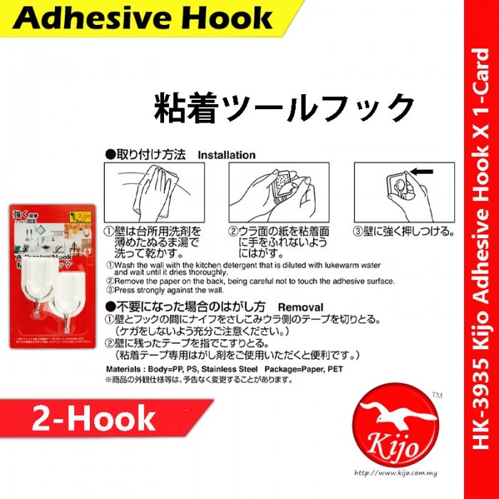 【2-Hook】KIJO Strong Adhesive Hook Self-Adhesive Hook #3935
