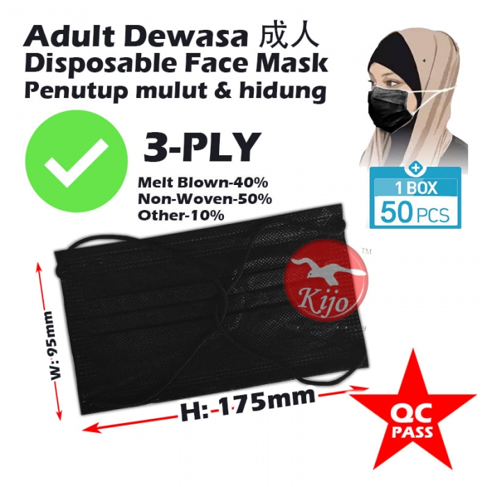 Black Head Loop Hijab Adult Disposable Face Mask Topeng Penutup Mulut & Hidung Pelitup Muka #HeadLoop #Hijab #FaceMask #2131-BK