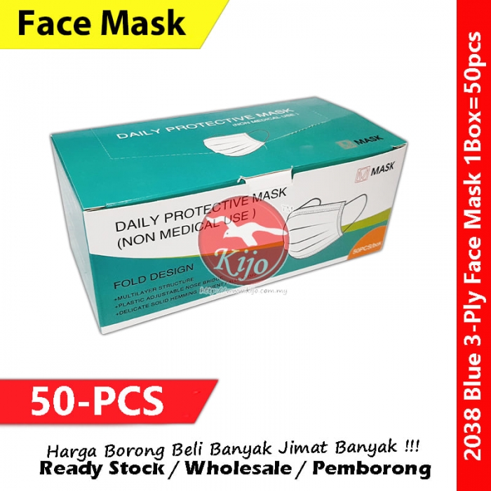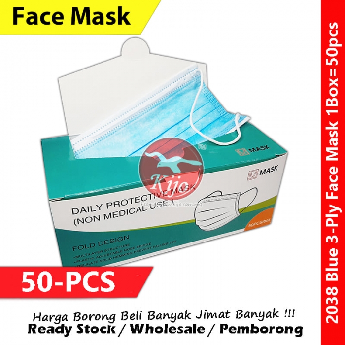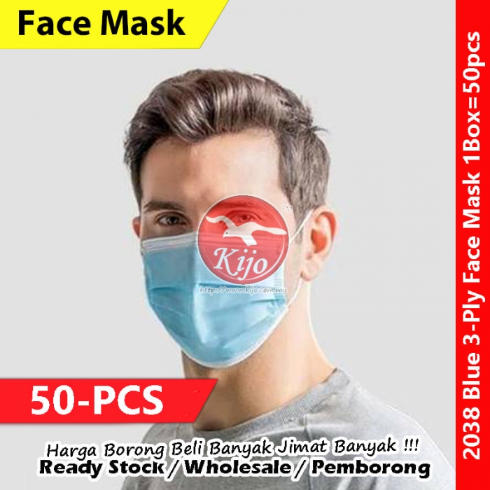 【50-PCS】Blue 3-Ply Face Mask Disposable Daily Face Mask #3ply #EarLoop #Disposable #FaceMask #Blue #2038 #蓝色 #一次性口罩