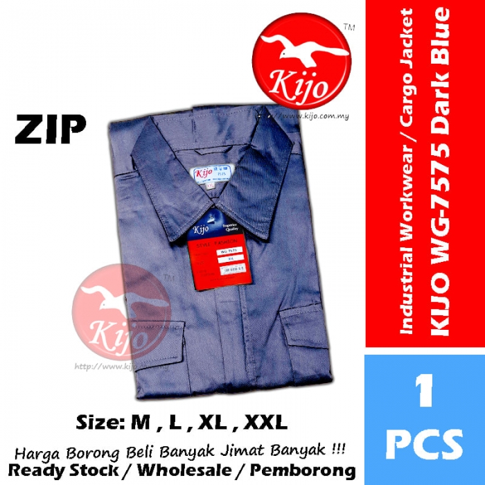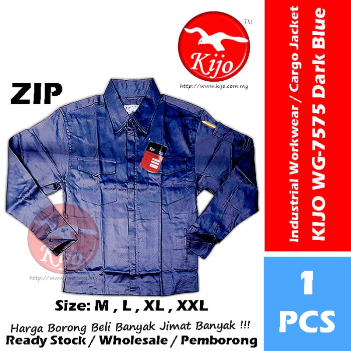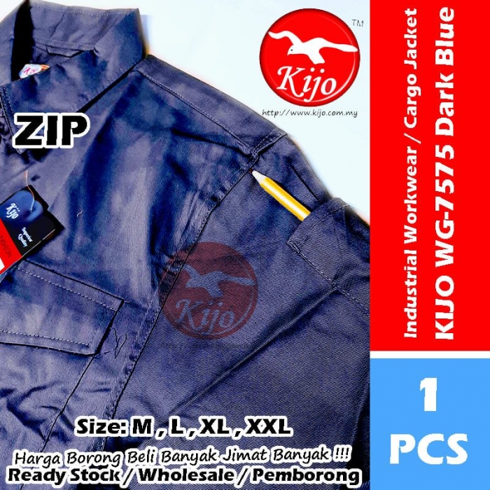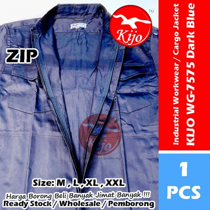 【Dark Blue】#Cotton #Industrial #Cargo #Jacket #ZIP #YKK #Workwear #Baju #Kerja #Worker #Jacket #5-pocket #Cargo #Jacket #7575 #ZIP