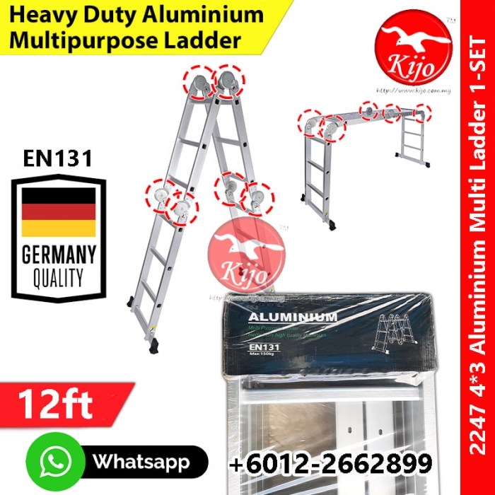 【4*3ft 12step】Silver Multipurpose Aluminum Ladder Folding Tangga #Germany #150KG #多功能 #楼梯 #2247