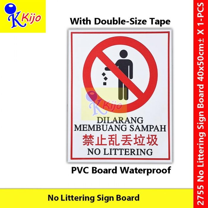 【50cmX40cm】 No Littering Dilarang Membuang Sampah PVC Waterproof Sign Board with Double Tape #2755 #