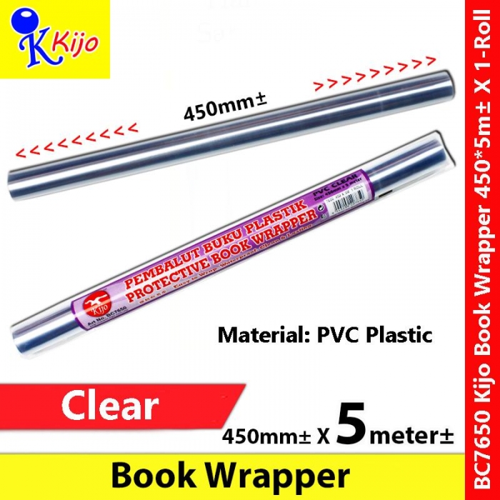 Kijo PVC Clear Book Cover Wrapper 450mm± X 5meter± #7650 #BookCover #BookWrapper #Kijo #PembalutBuku #Plastic #包书纸