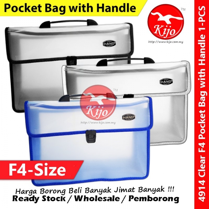 F4 Two Pocket Bag with handle / Emboss Transparent F4 Pocket Bag #4914 #Clear #F4 #Pocket #Bag #2Pocket #Emboss