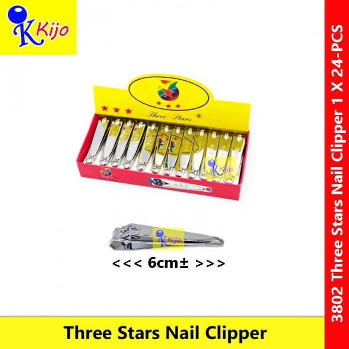 Three Stars Stainless Steel Nail Clipper 3802 6cm± 1-Box = 24-PCS