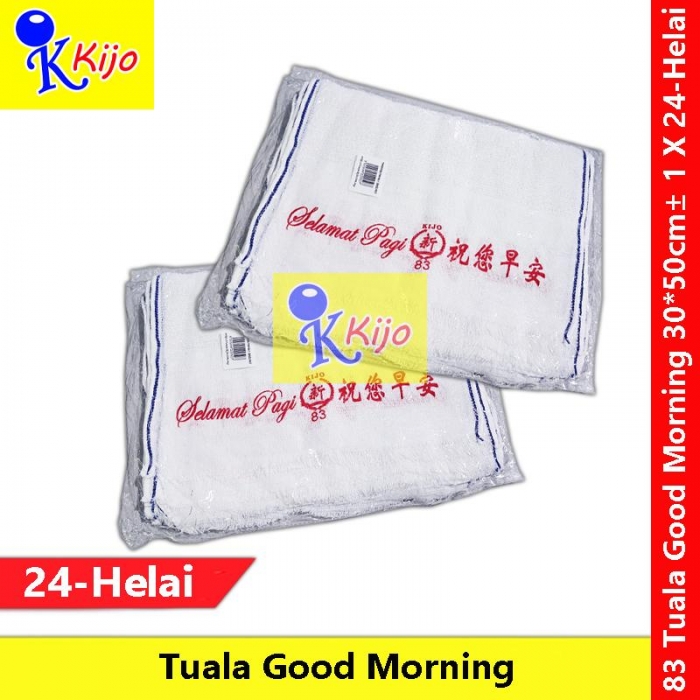 【24-Helai】 83 Tuala Good Morning Tuala Putih Selamat Pagi 2 X 12-Helai #83 #GoodMorningTowel #TualaPutih #100%Cotton