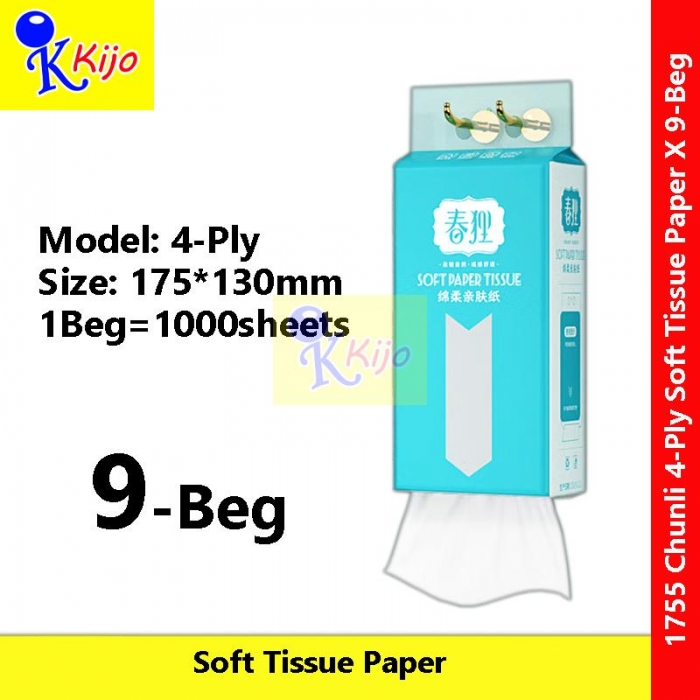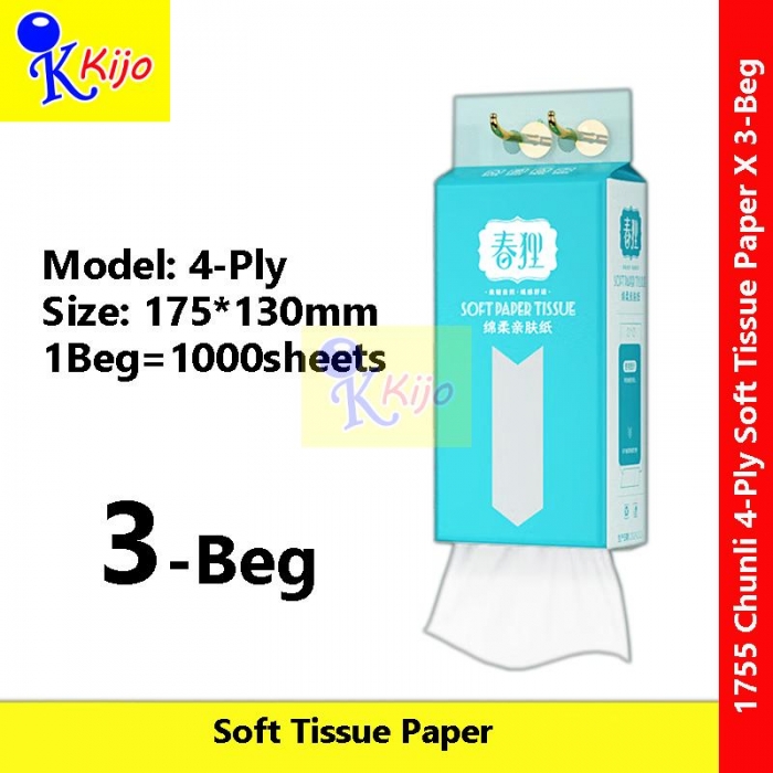 Chunli 4-Ply Soft Tissue Paper Botare Tissue 175*130mm 1000sheets Tisu Paper Tebal Jimat #1755 #Chunli #4-Ply #柔软纸巾 #卫生纸巾 #TisuPaper #BotareTissue