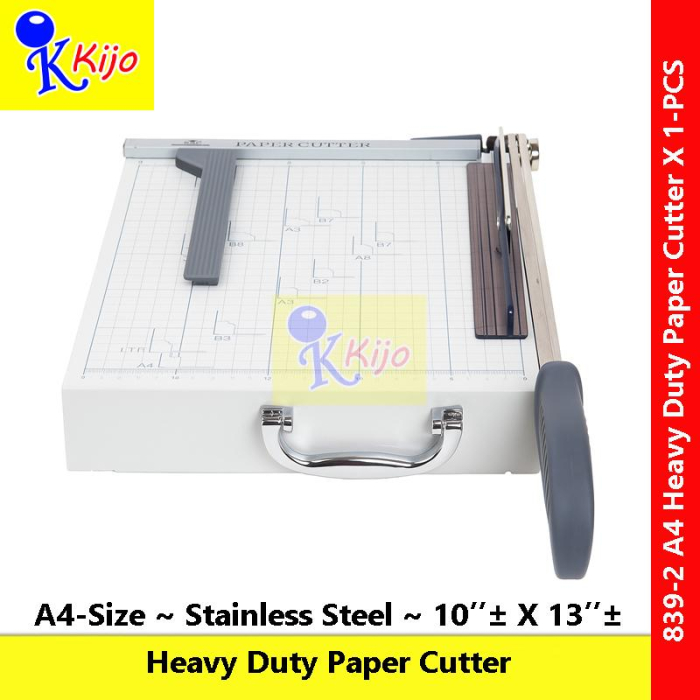 - The Jielisi #839-2 Heavy Duty Paper Cutter is built with a premium stainless steel blade that ensures smooth, accurate, and clean cuts every time. Perfect for A4 or 10x13” papers, this trimmer is ideal for offices, schools, print shops, and studios requiring professional-grade cutting performance.