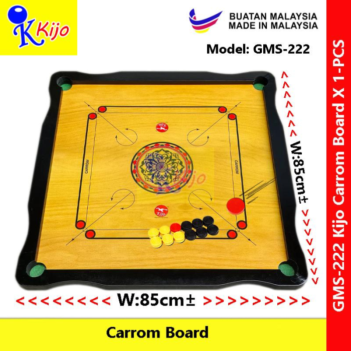 - Enjoy classic carrom fun with the Kijo GMS-222 Carrom Board, designed with a generous 85cm playing surface and a beautifully crafted wooden finish. Perfect for family entertainment, school activities, and friendly competitions.
